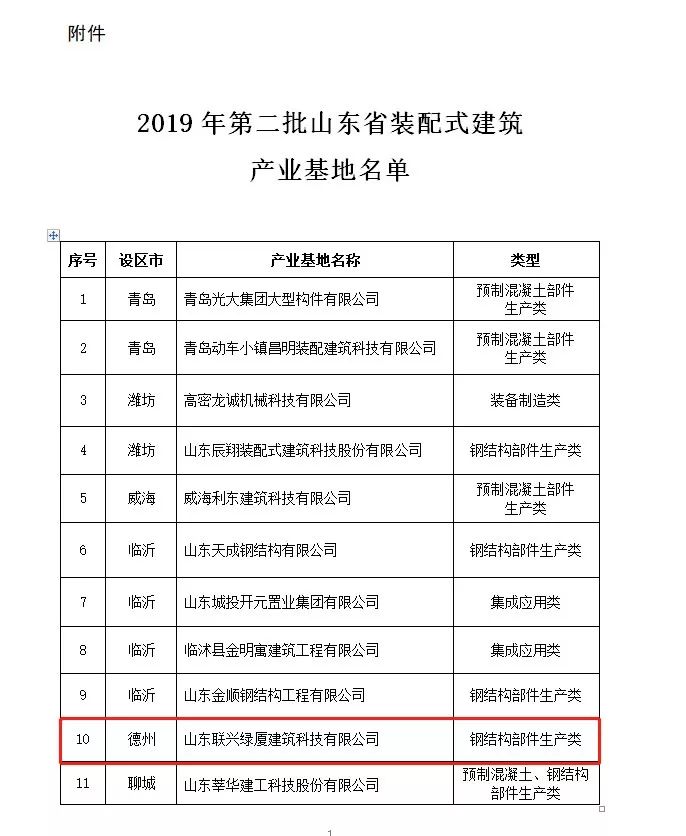 2019年12月17日,山东省住房和城乡建设厅组织在山东职工之家101会议室召开《关于对2019年第二批省级装配式建筑产业基地申报项目的专家评审会》。根据《山东省装配式建筑产业基地管理办法》(鲁建节科字〔2017〕29号)、《关于组织申报省级装配式建筑示范城市示范工程和产业基地的通知》(鲁建节科函〔2017〕25号)的要求,经有关市推荐、专家评审、网上公示等程序,12月24日,山东省住房和城乡建设厅公布了”2019年第二批山东省装配式建筑产业基地名单“,山东联兴绿厦建筑科技有限公司榜上有名,作为德州市唯一一家企业获此荣誉。